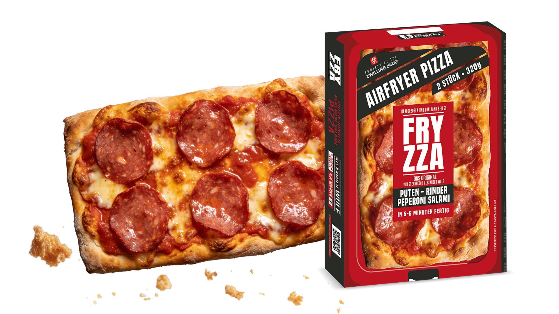 Hefeteig mit Weizensauerteig 51 % (Weizenmehl, Wasser, Hartweizengrieß, natives Olivenöl extra, Salz, getrockneter Weizenstärke, getrockneter Weizensauerteig 0,4%, Hefe, getrockneter Gerstenmalzextrakt), Tomatensoße 17 % (Tomatenmark, Salz, Gewürze), Puten-Rinder-Peperoni-Salami 17 % (Putenfleisch 50%, Rinderfett 22%, Rindfleisch 10%, Salz, Aroma, Milcheiweiß, Gewürze, Kräuter, Kartoffelstärke, Glukosesirup, Antioxidationsmittel: E301, E300, Stabilisator: E451, Farbstoff: E160a, Raucharoma, Konservierungsstoff: E250), Mozzarella 15 % (Milch, Salz, mikrobielles Lab, Milchsäurebakterien), Kann Spuren von Soja, Schalenfrüchten, Fisch, Eier, Sellerie und Senf enthalten.